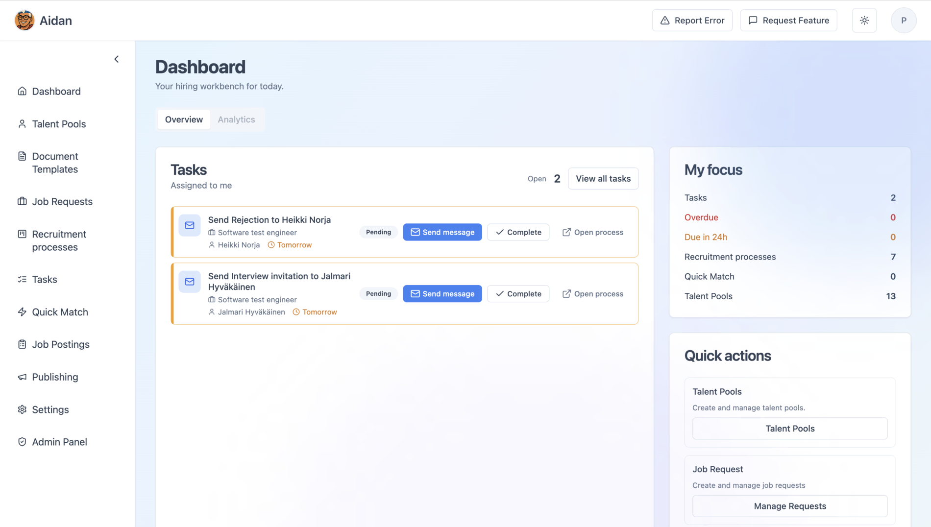 Contact us and we will show you concretely how Aidan can help you to streamline and automate your recruiting processes.